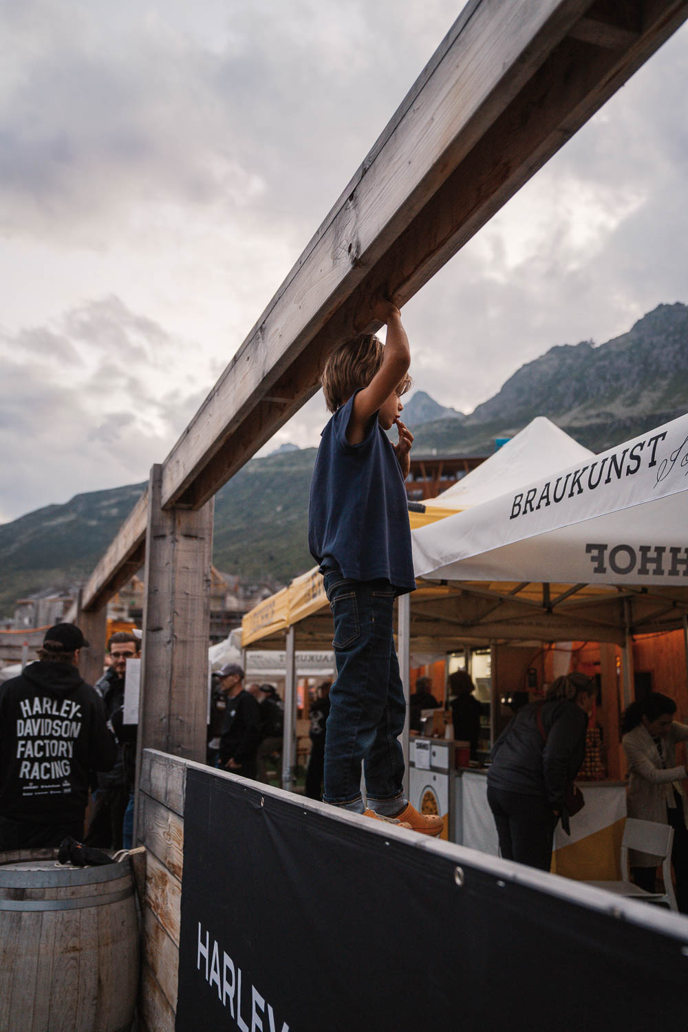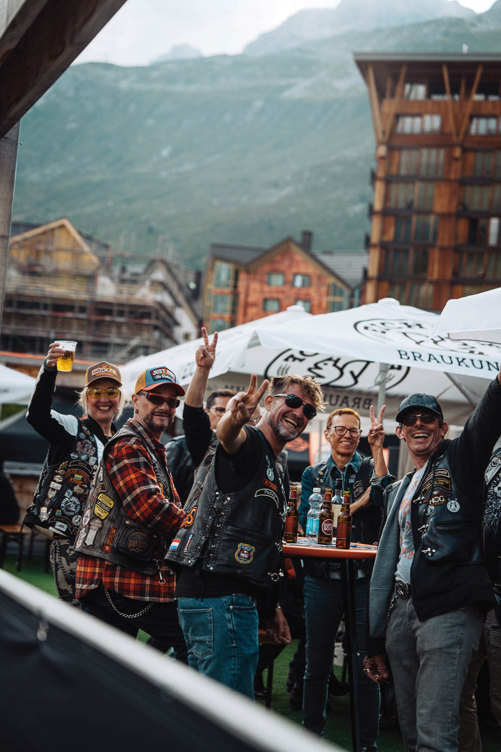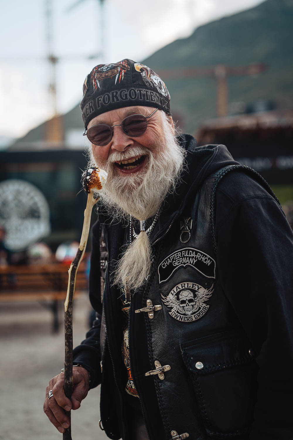 Für jeden war etwas dabei: Workshops, Challenges, um seine Fahrkünste zu testen, Ausfahrten über die umliegenden Alpenpässe, leckeres Essen und feine Drinks, Live-Bands und DJ – ja, sogar ein Whirlpool war vor Ort – bis hin zur Bewunderung der neuesten und teils sehr extravaganten Motorrad-Modelle, die das Festgelände schmückten. Die gemütliche Atmosphäre am Lagerfeuer, die zum Beisammensein und Austauschen von Geschichten bis spät in die Nacht prädestiniert war, führte mich auf eine Zeitreise zurück in meine Kindheit – dorthin, wo im gegenwärtigen Moment zu leben noch eine Selbstverständlichkeit war. Und eine Wurst vom Feuer als Late-Night-Snack durfte natürlich auch nicht fehlen.